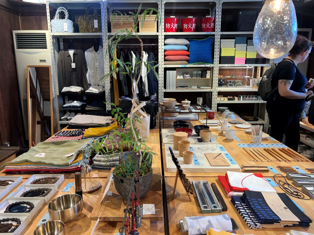 A simple cup, which might look just functional online, becomes a curated object filled with the temple’s sense of history. The environment transforms the act of shopping into a cultural thing. Even used items are valuable pieces of good design.