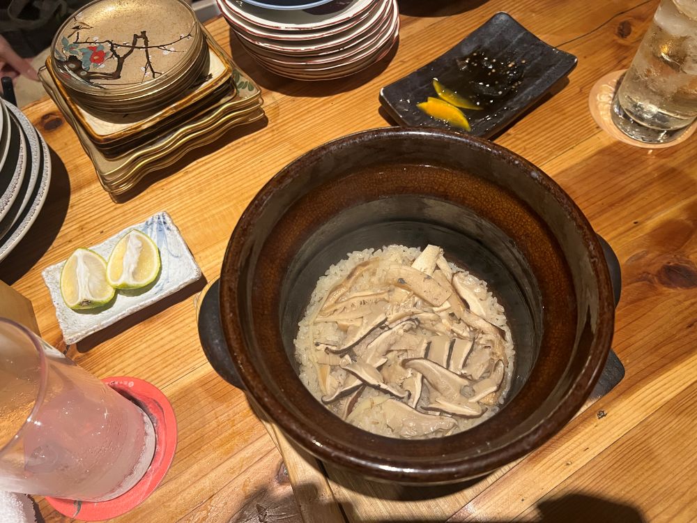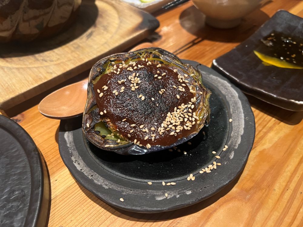 I ordered several dishes: an arugula salad, an eggplant topped with beef sauce, a mushroom rice cooked in a clay pot, and an eggplant slowly burnt and served with sesame. They were light and comfortable. Even when beef was used, they supported vegetables, not dominate them.